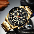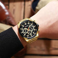 Experience the perfect fusion of luxury, durability, and precision with the CURREN Luxury Men’s Chronograph Watch. Designed for modern men who seek elegance without compromising performance, this timepiece stands out with its bold gold-plated stainless steel construction and refined multifunction dial.