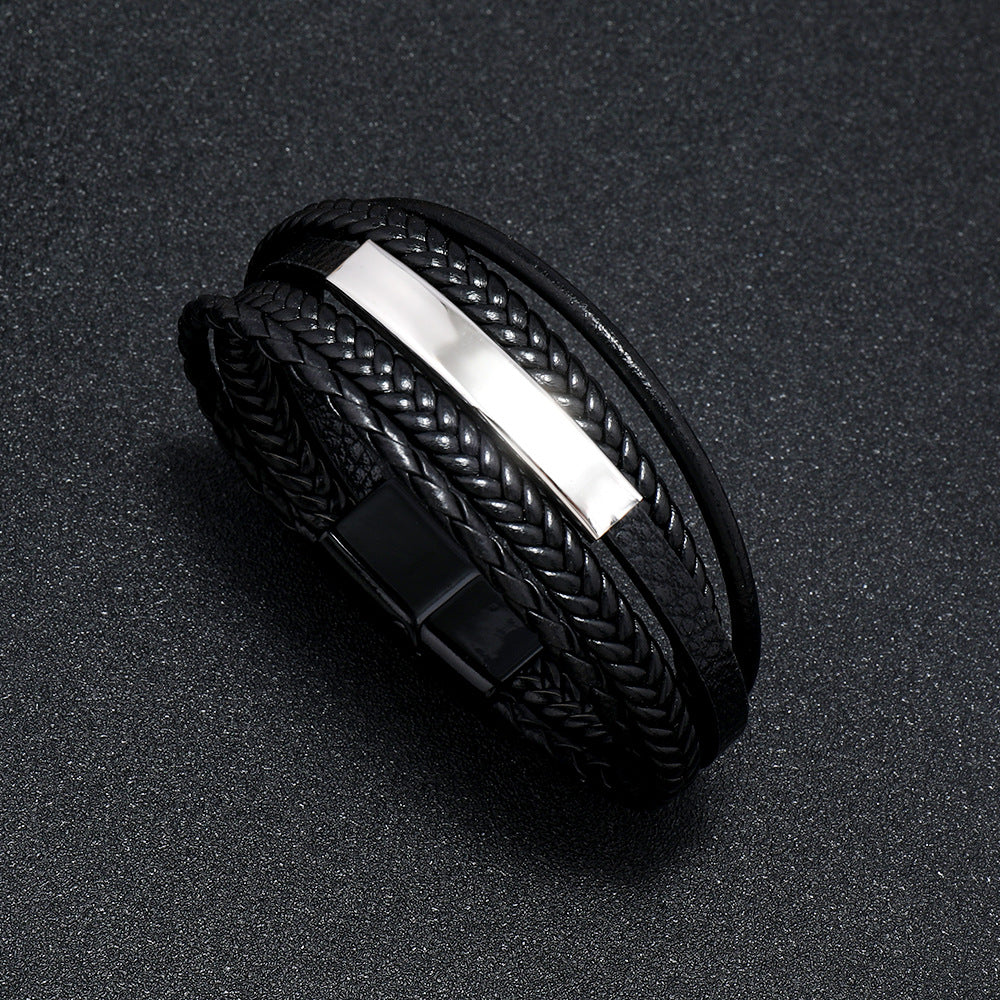 Premium Men’s Braided Leather Bracelet – Stainless Steel Magnetic Clasp